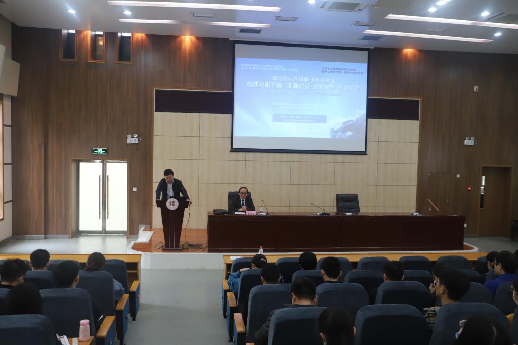 活动第二阶段,郑林科教授为学校学工干部和学生代表做了“春季心理危机干预”专题报告,党委研究生工作部部长宋传东主持报告会并做点评。