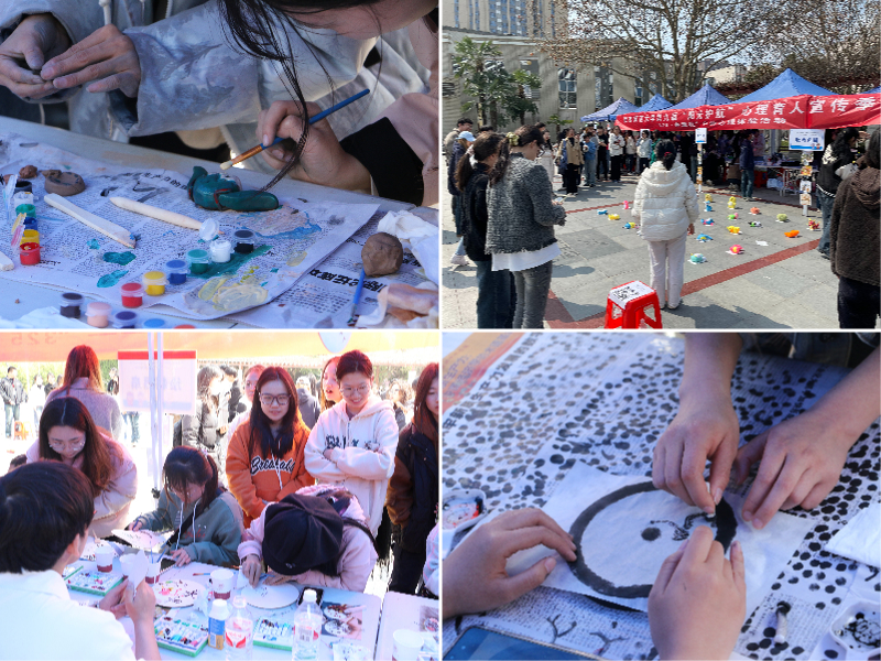 活动现场,泥塑手工、团扇绘制、瓦当拓印等活动让同学们在一笔一划、一描一绘中打开心灵、舒缓情绪,感受静谧的心流;魔力套圈、随心而动、情绪回收站、折纸飞机等活动让同学们在游戏体验中放松心情,愉悦身心;家庭格盘、OH卡、彩虹卡体验活动中,在专业咨询师的带领下帮助同学们探索和认识自我,感受内在的丰富多彩。